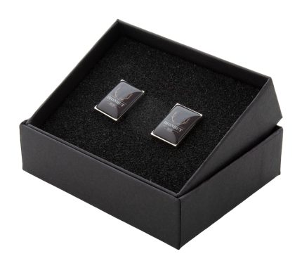 Elegantna, metalna kemijska i roler olovka s gumiranim cijevima i metalnim dijelovima. U crnoj poklon kutiji. S plavim punjenjem.