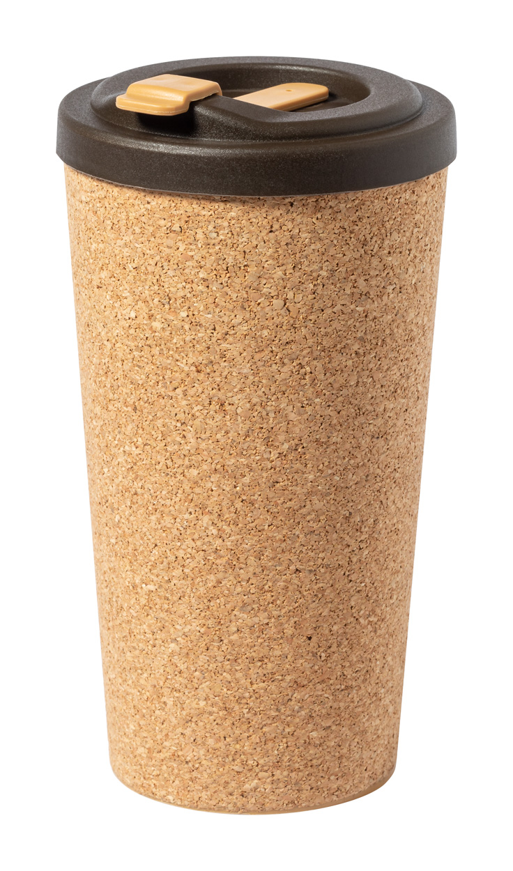 Plastična termo šalica od PP dvostruke stijenke s prirodnim plutom i poklopcem za piće, 500 ml. Ne sadrži BPA.