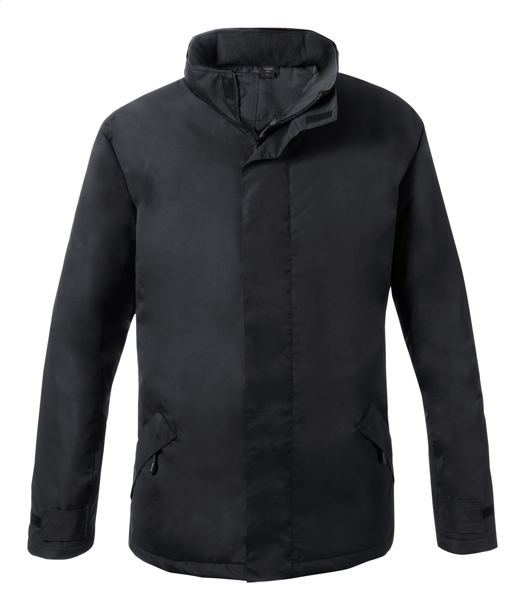 Vodootporna jakna od poliestera s podstavom od polarnog flisa. S unutarnjim zatvaračem za ispis.