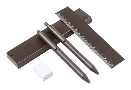 Držač posjetnica i okretna kemijska olovka od metala i bambusa. S plavim punjenjem. U kartonskoj poklon kutiji.