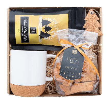 Putni poklon set u poklon kutiji od kraft kartona s punjenjem od drvene vune i crvenom vrpcom. Uključuje: “Kayla” RPET polarni pokrivač; vakuumska boca “Makalu”; kava “Luis” Costa Rica (40 g); “Floq” zanatski cantuccini (100g); “Jerpstad” ukras za božićno drvce.