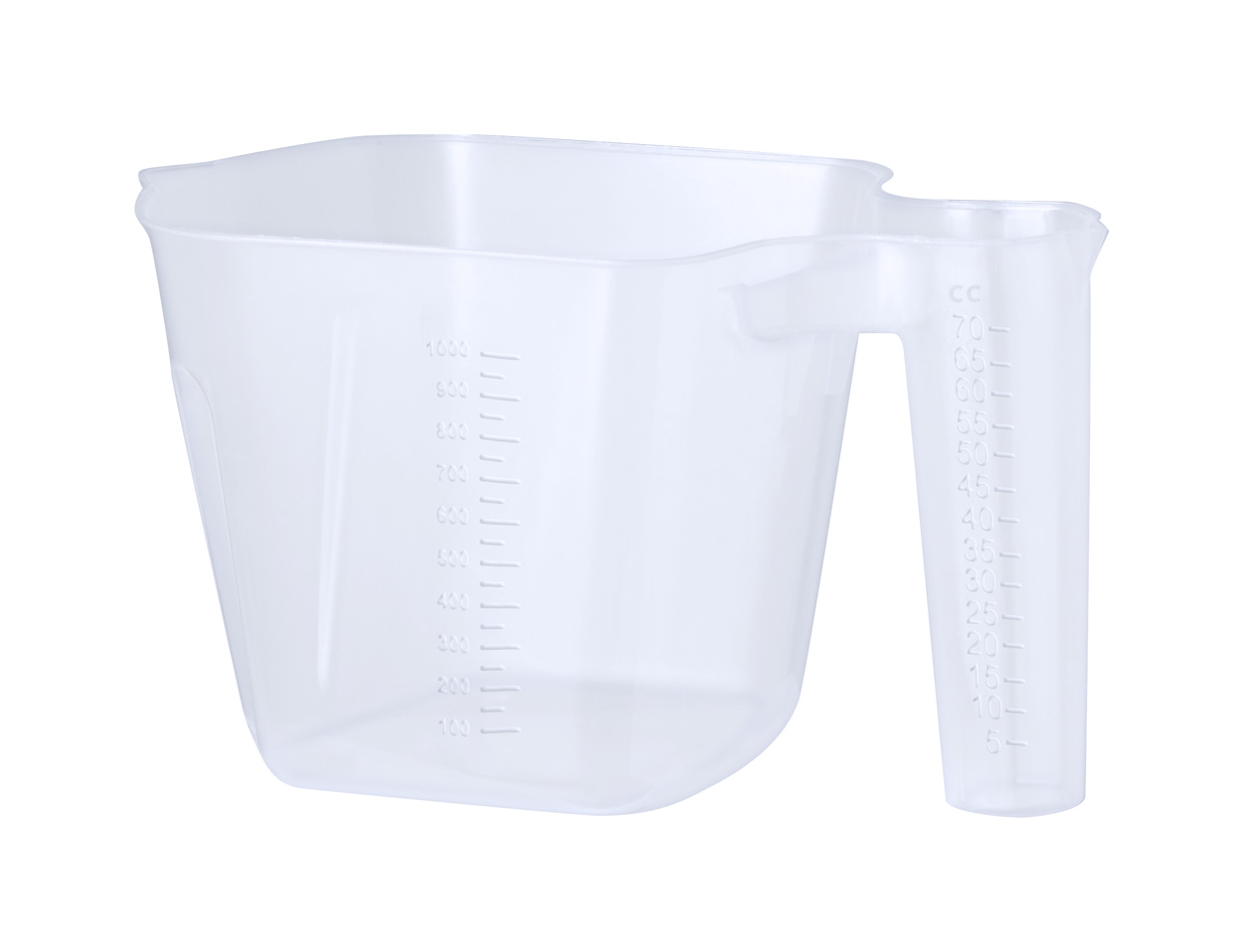 Mjerni vrč od otpornog prozirnog PP-a, s integriranom mjernom ručkom, 1000 ml.