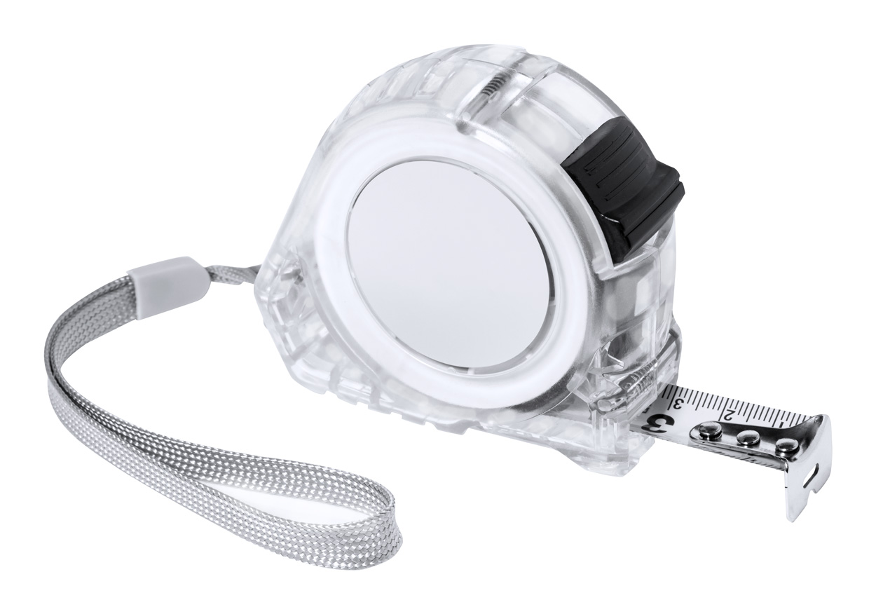 Mjerna traka u prozirnom plastičnom kućištu, s metalnom oštricom, funkcijom zaključavanja i remenom za ruku, 5 m.