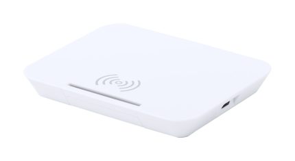 Bežični punjač u plastičnom kućištu s funkcijom držača za mobitel. Maks. izlaz: 1000 mA. Uključujući USB kabel.